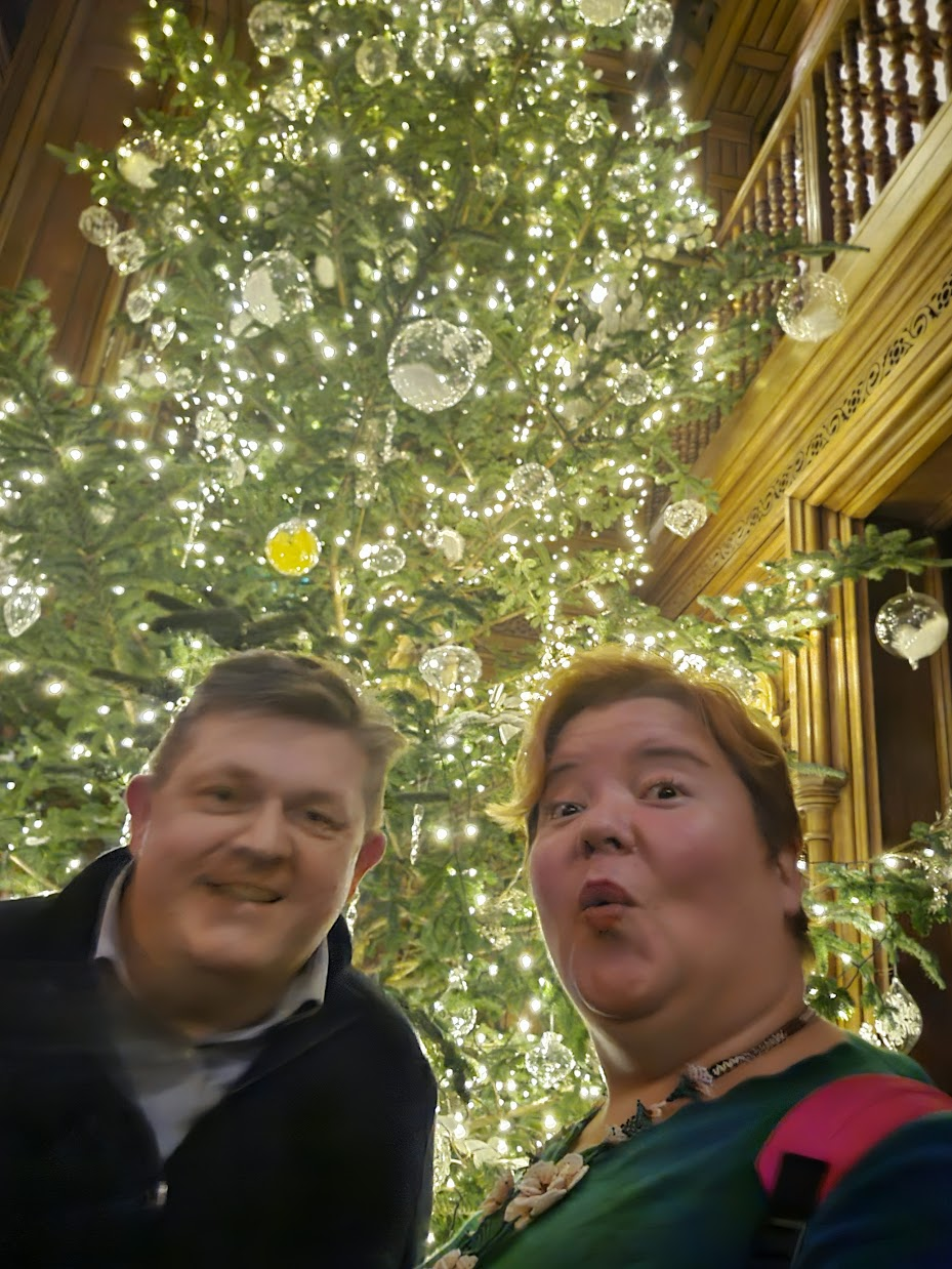 Before we left the castle, Dermot kindly obliged me with a selfie for our first in-person meeting by that massive Christmas tree.